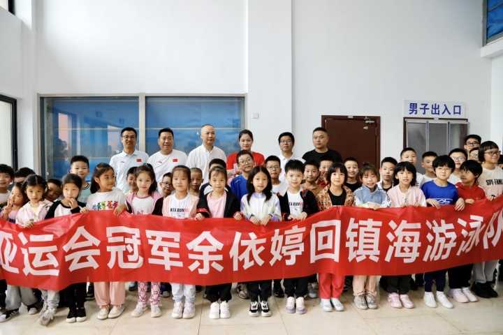 10月6日,在杭州第19届亚运会上夺得3金1银的泳坛新秀余依婷载誉返回镇海,前往位于骆驼中心学校的镇海区游泳队和镇海中学,看望母校师生,并进行热烈互动。