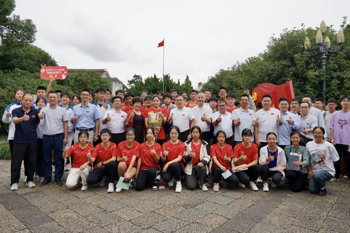 随后,余依婷和母校师生合影留念,留下温馨美好的瞬间。